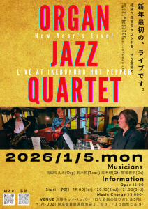 私のオルガン・ジャズ・カルテット、約2年ぶりのライブになります。